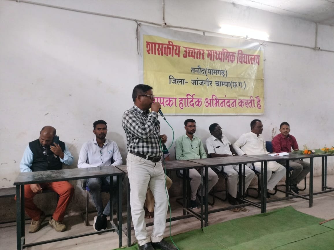 शासकीय उच़्चतर माध्यमिक विद्यालय तनौद विकास खण्ड पामगढ़ में विद्यालय के प्राचार्य मनोज कुमार साहू के नेतृत्व में श्री घासीराम चौहान राजीव युवा मितान क्लब अध्यक्ष पामगढ़ के मुख्य आतिथ्य एवं श्री राजेश साहूअध्यक्ष शाला प्रबंधन एवं विकास समिति तनौद के अध्यक्षता में शाला परिवार की ओर से बी एड प्रशिक्षार्थियों के विदाई समारोह का आयोजन किया गया। इस कार्यक्रम का शुभारंभ अतिथि श्री घासीराम चौहान एवं राजेश कुमार साहू द्वारा ज्ञ्यानदायिनी मां सरस्वती की प्रतिमा पर दीपप्रज्वलित कर किया गया।तत्पश्चात विद्यार्थियों द्वारा अतिथियों , शिक्षकों एवं बी एड के प्रशिक्षार्थियों का गुलदस्ते से स्वागत किया गया इस अवसर पर विदयार्थियों ने उत्साहपूर्वक मनमोहक सांस्कृतिक कार्यक्रम प्रस्तुत किया।मुख्य अतिथि घासीराम चौहान ने विद्यार्थियों से कहा कि विद्यार्थी अपना पूरा ध्यान पढ़ाई पर केन्द्रित करे।और अपना नाम रोशन करें।इस अवसर पर विद्यालय के प्राचार्य ने बी एड के प्रशिक्षार्थियों को उज्जवल भविष्य की शुभकामनाएं देते हुए कहा कि प्रशिक्षित अध्यापक अपनी प्रतिभा का उचित प्रदर्शन करने मे सक्षम रहता है।अध्यापन एक कला है तथा अध्यापन को कुशलता पूर्वक निभाने लिए अध्यापक प्रशिक्षण अत्यंत आवश्यक है इस अवसर पर विद्यालय के प्राचार्य मनोज कुमार साहू द्वारा शाला परिवार की ओर से अतिथियों तथा बी एड प्रशिक्षार्थियों को स्मृति चिन्ह प्रदान किया गया तथा विभिन्न प्रतियोगिता रंगोली, चित्रकला, खेल खो खो,कब्बडी मे भाग लिये विद्यार्थियों को बी एड प्रशिक्षार्थियों द्वारा पुरुस्कार प्रदान किया गया।कार्यक्रम का सफल संचालन संतोष कुमार साहू द्वारा किया गया।इस कार्यक्रम को सफल बनाने मे शिक्षक दिलेसर सिंह राज,संतोष कुमार साहू, श्याम सिंह कोर्राम, गिरिवर सिंह टंडन,जितेंद्र कुमार महिपाल सहित समस्त स्टाफ का सराहनीय योगदान रहा।