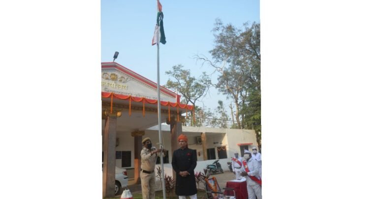 बिलासपुर 26 जनवरी 2021। संभागायुक्त डाॅ. श्री संजय अलंग ने आज गणतंत्र दिवस 26 जनवरी के अवसर पर संभागायुक्त कार्यालय प्रांगण में प्रातः 8 बजे ध्वजारोहण किया। महात्मा गांधी के चित्र पर माल्यार्पण के पश्चात् राष्ट्र गान ’’जन-गण-मन’’ गाया गया। इस मौके उपायुक्त श्रीमती अर्चना मिश्रा सहित संभागायुक्त कार्यालय के समस्त अधिकारी-कर्मचारीगण उपस्थित थे।