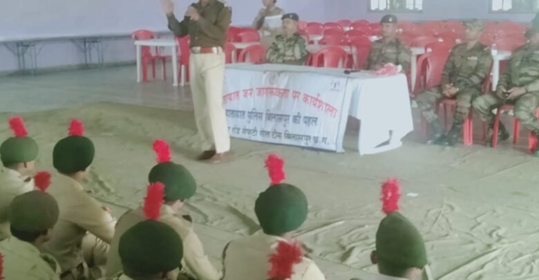 बिलासपुर 21 फरवरी 2021।पुलिस अधीक्षक श्री प्रशांत अग्रवाल के दिशा निर्देश एवं यातायात डीएसपी श्री सत्येंद्र पांडेय के मार्गदर्शन में रविवार को जैन इंटरनेशनल स्कूल में जिला स्तरीय महाविद्यालय एनसीसी प्रशिक्षण शिविर में यातायात जन जागरूकता कार्यशाला का आयोजन किया गया।