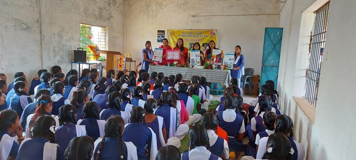बिलासपुर 24 फरवरी 2021।”वर्ल्ड रोटरी डे” को रोटरी क्लब क्वीन ने महावारी जागरूकता अभियान के रूप में मनाया। उनके द्वारा क्षेत्र के द्वारिका प्रसाद शुक्ला हाई सेकेंडरी स्कूल, ग्राम- नवापारा( घोंघाड़ीह ) के स्कूल में जाकर मासिक धर्म (महावारी ) के प्रति छात्राओं में जागरूकता पैदा की गई तथा बच्चों को पौष्टिक आहार के सम्बंध में जानकारी दी गयी ।