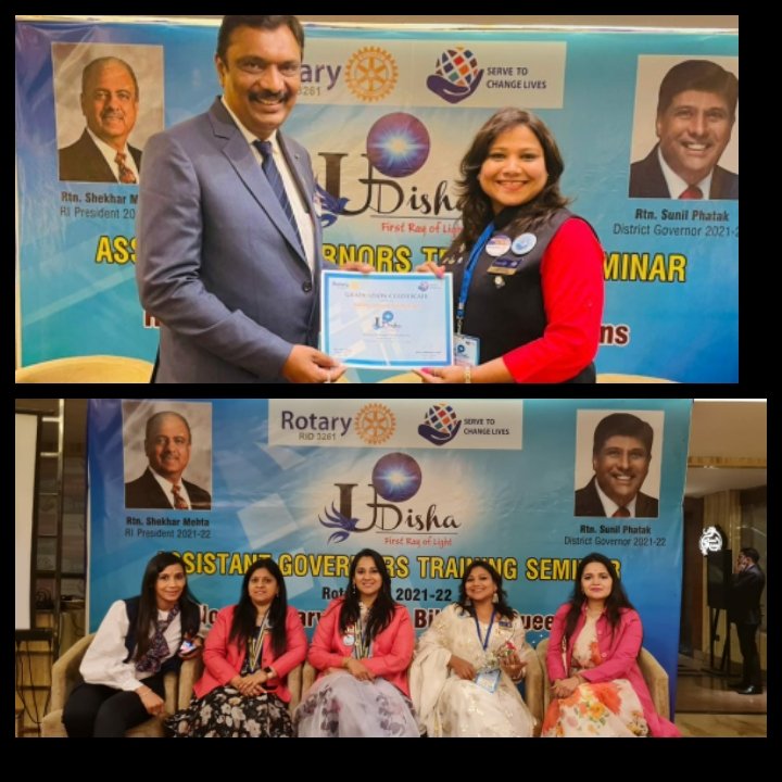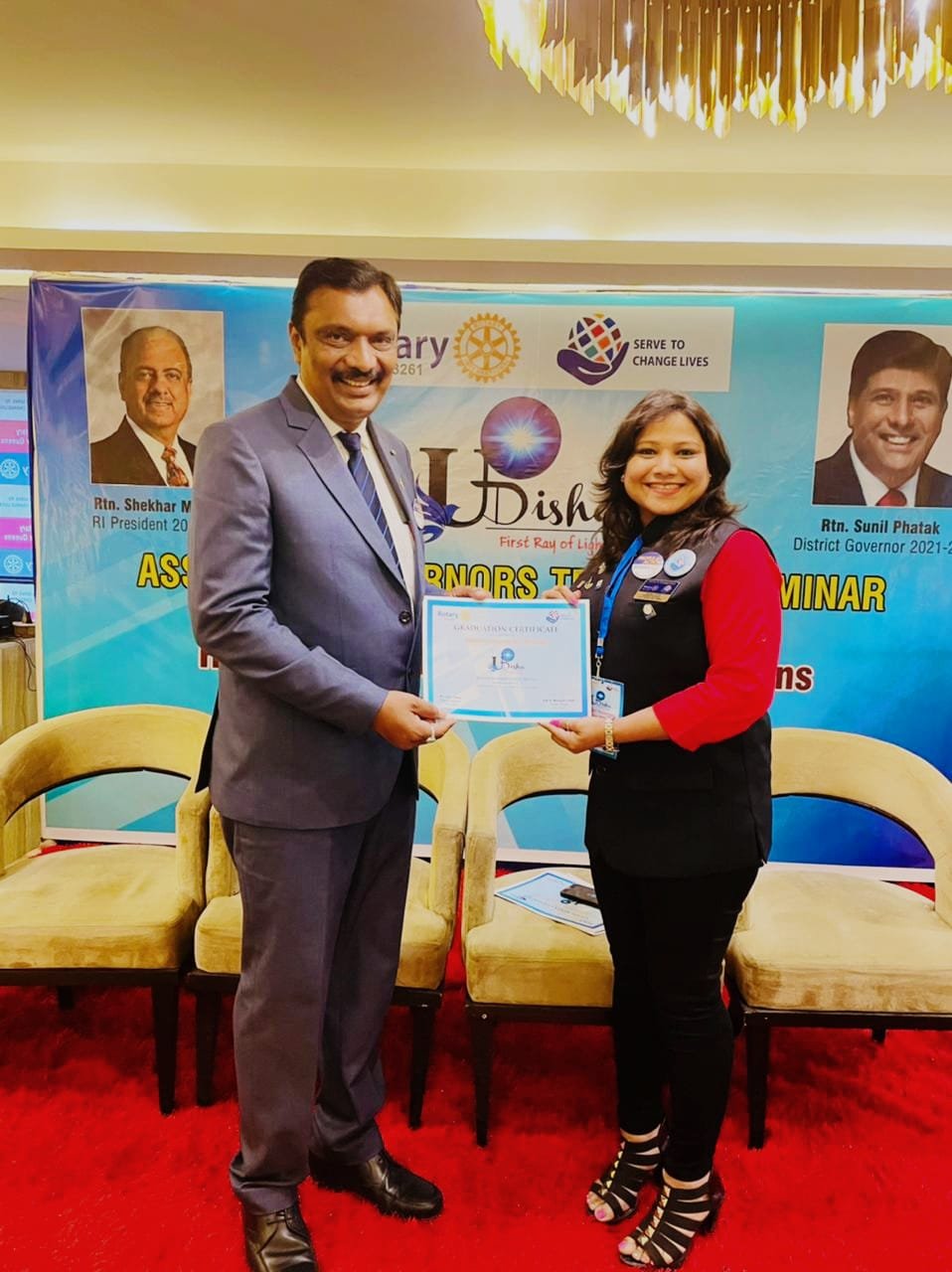 पिछले दिनों रोटरी जबलपुर डिस्ट्रिक्ट गवर्नर सुनील पाठक 3261 एवं डिस्ट्रिक्ट सेक्रेटरी अखिल मिश्रा ने वर्ष 2021-22 के कार्यकाल के लिए कुल 27 असिस्टेंट गवर्नर का चयन किया गया था । जिसकी ट्रेनिंग बिलासपुर में होटल सेंट्रल प्वाइंट में दिनांक 06 एंव 7 मार्च को दो दिवसीय ट्रेनिंग कार्यक्रम का आयोजित नक्रया गया था जिसमे रोटरी क्वीन की पूर्व अध्यक्षा श्रीमती पायल लाठ भी इस ट्रेनिंग का हिस्सा बनी थी। जंहा उनके द्वारा कोविड -19 महामारी के दौरान जरूरतमंद व असहाय लोगो के लिए में हर संभव मददत करते हुए उन्हें खाने पीने की सामाग्री, कपड़े, जूते आदि वितरित किये गए थे। साथ ही उनके द्वारा कोरोना वारियर्स पुलिस, स्वास्थ्य कर्मचारी, सफाईकर्मी सभी के साथ मिलकर जरूरतमंदों को हर संभव मद्दत पहुचने का कार्य किया गया था। जिनकी क्रियाशील व समाज सेवी भावना को देखते हुए श्रीमती पायल लाठ को रोटरी क्लब का असिस्टेंट गवर्नर बनाया गया है। जो कि बहुत जल्द ट्रेनिंग प्राप्त करने के बाद पुनः जरूरत मंदों की मदद के लिए एक नई मुहिम के साथ समाज की सेवा के लिए उपस्थित होंगी।