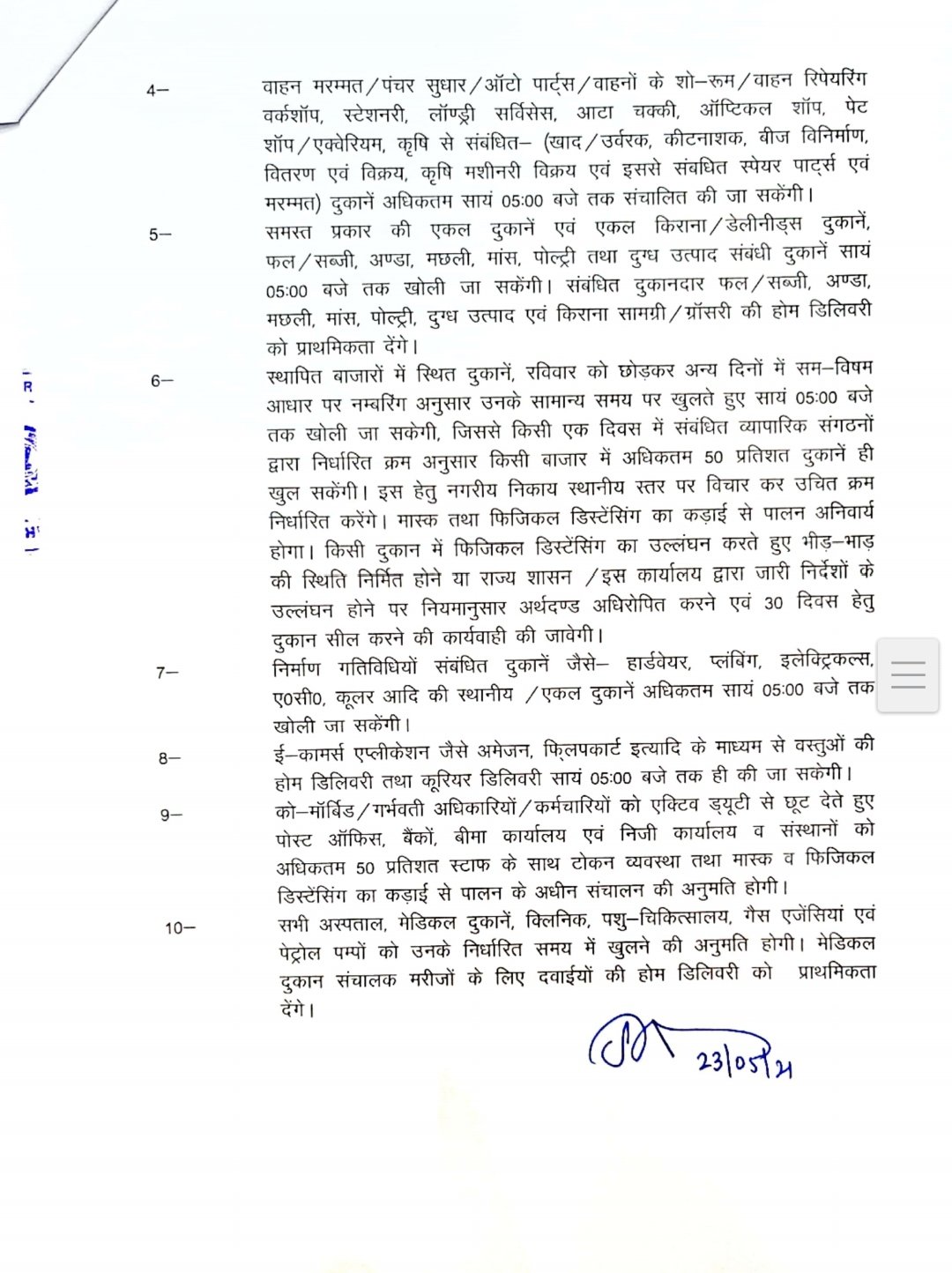 कलेक्टर डॉ सारांश मित्तर ने आज जारी किए अपने आदेश में कुछ छूट को बढ़ाते हुए जिले में लॉक डाउन की अवधि को अब 31 मई रात्रि 12 बजे तक बढ़ा दी है।