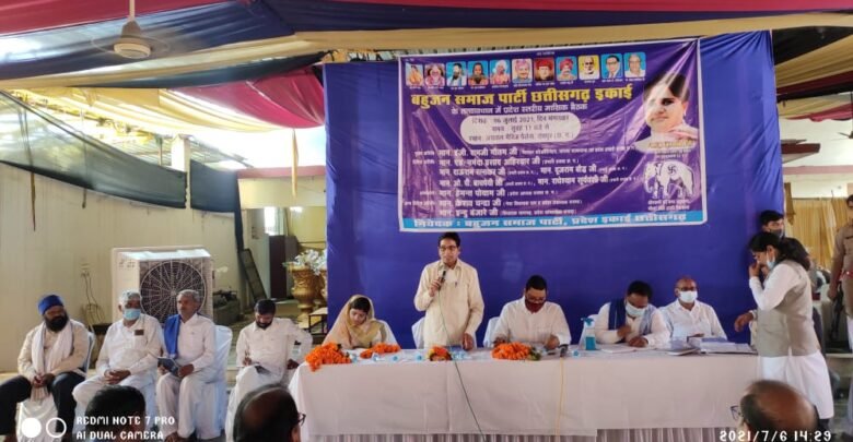 रायपुर। दिनांक 06-जुलाई 2021 को रायपुर में छत्तीसगढ़ बहुजन समाज पार्टी की प्रदेश कमेटी की बैठक रखी गई। जिसमें मुख्य अतिथि के रूप में रामजी गौतम साहब उपस्थित थे। बैठक में प्रदेश प्रभारीगण नर्मदा प्रसाद अहिरवार, दाऊराम रत्नाकर,दूजराम बौद्ध, राधेश्याम सूर्यवंशी, केशव चंद्रा विधायक, श्रीमती इंदु बंजारे, .रामजीत पनिका, इंजी.रामेश्वर खरे, आदि सहित महत्वपूर्ण पदाधिकारी उपस्थित थे। कार्यक्रम में उपस्थित सदस्यों को संबोधित करते हुए मान.रामजी गौतम जी ने कहा कि आज देश में केन्द्र व राज्य सरकार की जन विरोधी नीतियों से में देश की जनता बहुत दुखी है।