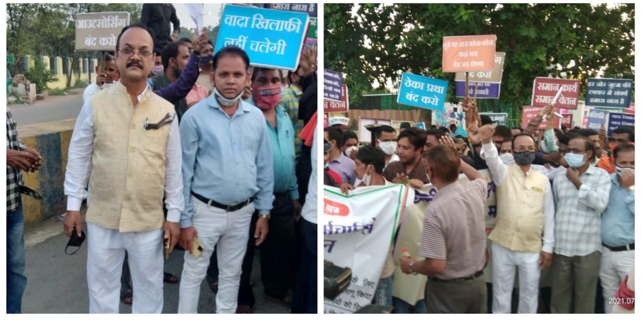 रायपुर 10 अगस्त 2021 । मंहगाई भत्ता में लंबित 16% वृद्धि की मांग को लेकर प्रदेश अधिकारी कर्मचारी संघ छत्तीसगढ़ रायपुर की ओर से प्रदेश के मुख्यमंत्री माननीय भूपेश बघेल से अनुरोध किया गया है कि प्रदेश में निरंतर बढ रही मंहगाई का असर राज्य के सभी कर्मचारियों पर एक समान पड रहा है, आप के द्वारा भारतीय सेवा के अधिकारियों एवं राज्य विद्युत बोर्ड के कर्मचारियों को केन्द्र के समान डी ऐ लागू कर दिया गया है । जबकि प्रदेश का हर कर्मचारी कहीं न कहीं राज्य के विकास हेतु संचालित योजनाओं के क्रियान्वयन में भूमिका निभाने के लिए अपने कर्तव्यों का निर्वहन करता है । पंजाब, हरियाणा, राजस्थान, उत्तर प्रदेश, झारखंड आदि सरकारों द्वारा अपने कर्मचारियों को 28% मंहगाई भत्ता स्वीकार किया गया है, आपके जन घोषणा पत्र में वायदे के अनुसार लिपिकों एवं अन्य कैडर के कर्मचारियों की वेतन विसंगति, अनियमित, दैनिक वेतन भोगी, संविदा, कलेक्टर दर,आउट सोर्सिंग से कार्यरत कर्मचारियों को नियमितीकरण करने, पदोन्नति-क्रमोन्नति,समयमान, पुरानी पैंशन योजना लागूं करने जैसे महत्वपूर्ण मुद्दों पर आज दिनांक तक कोई कार्रवाई नहीं की गई है, कर्मचारी संघ धरना प्रदर्शन के माध्यम से लगातार शासन का ध्यान आकर्षित कर रहा है इसके बाद भी कर्मचारियों की लंबित मांगों को नजरअंदाज किया जा रहा है जिससे प्रदेश के लाखों कर्मचारियों में आक्रोश है।