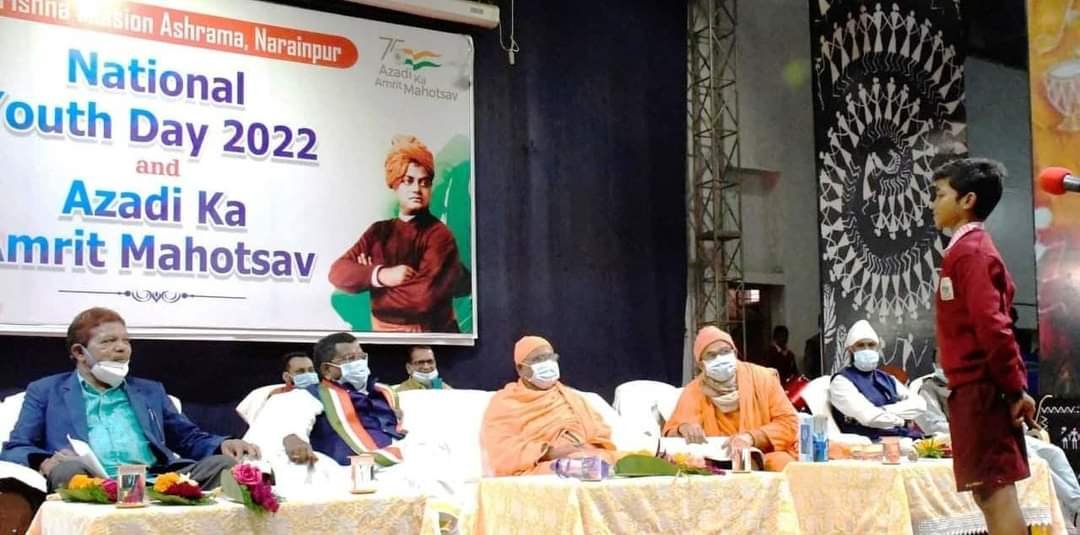राष्ट्रीय युवा दिवस कार्यक्रम को संबोधित करते हुए रामकृष्ण मिशन आश्रम के सचिव स्वामी व्याप्तानंद जी महाराज ने कहा कि आज पूरा देश युवाओं के साथ खड़ा है। आप सभी को मालूम है कि जिले में वर्ष 1984 में रामकृष्ण मिशन आश्रम की स्थापना हुई है। अबूझमाड़ के लोगों को बेहरत स्वास्थ्य एवं शिक्षा के लिए इस आश्रम की स्थापना हुई थी। यहां के बच्चे आश्रम में पढ़ाई कर एक अच्छा इंसान बनकर समाज में अमूल्य योगदान दे रहे हैं। इस अवसर पर आश्रम में पढ़ने वाले बच्चों ने भी कार्यक्रम को संबोधित किया।