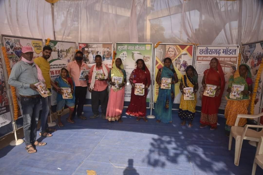राजनंदगांव 24 फरवरी 2022 l शासन की जनकल्याणकारी योजनाओं एवं उपलब्धियों को जनसामान्य तक पहुंचने के लिए आज जनसंपर्क विभाग द्वारा डोंगरगढ़ विकासखंड के ग्राम अण्डी में फोटो प्रदर्शनी लगाई गई। हाट बाजार में ग्राम अण्डी के अलावा अन्य ग्रामों के ग्रामवासियों ने भी शासन की योजनाओं जानकारी प्राप्त की। इस अवसर पर जनसंपर्क विभाग द्वारा प्रकाशित शासकीय योजनाओं की जानकारी संबंधित पुस्तिका, जनमन पत्रिका, ब्रोसर, पाम्पलेट्स का नि:शुल्क वितरण किया गया। प्रदर्शनी में बच्चे, युवा, बुजुर्ग सहित सभी वर्गों शासन की जनकल्याणकारी योजनाओं की जानकारी प्राप्त कर सराहना की। उच्चतर माध्यमिक विद्यालय के छात्रों ने शासन की योजनाओं की जानकारी और नि:शुल्क पत्रिका प्राप्त कर खुशी जाहीर की।