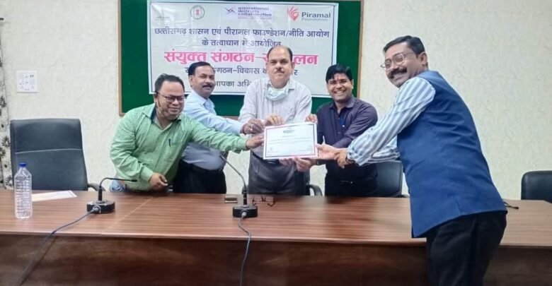 राजनांदगांव 01 मार्च 2022 l छत्तीसगढ़ शासन एवं पीरामल फाऊंडेशन नीति आयोग के संयुक्त तत्वावधान में संयुक्त संगठन सम्मेलन संयुक्त संगठन विकास की राह पर विषय को लेकर जिला पंचायत सभागार में आयोजित हुई। सम्मेलन का उद्देश्य एस्पिरेशनल डिस्ट्रिक्ट कोलैबोरेटिव में सहयोगी संस्थाओं के योगदान को पहचानना एवं एस्पिरेशनल डिस्टिक कोलैबोरेटिव के भविष्य नेटवर्किंग के अवसरों की खोज व महत्वकांक्षी जिलों में काम कर रहे गैर-सरकारी संस्थाओं का एक समुदाय बनाने के लिए एक नई दृष्टि प्रदान करना है। भविष्य में विकास के विभिन्न अवसर उपलब्ध कराने जैसी संस्थाओं द्वारा किए गए उत्कृष्ट कार्यों को प्रदर्शित करने के लिए स्पेशल डिस्टिक को लैबोरेटिव द्वारा हर संभव प्रयास किया जा रहा है।