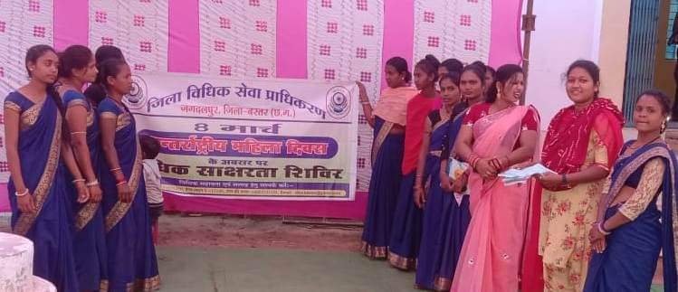जगदलपुर 09 मार्च 2022 l अन्तर्राष्ट्रीय महिला दिवस के अवसर पर मंगलवार को स्टेट प्लान आफ एक्शन के तहत जिला विधिक सेवा प्राधिकरण के पेनल अधिवक्ता एवं पैरालीगल वालिंटियर्स द्वारा विभिन्न स्थानों पर विधिक साक्षरता शिविरों का आयोजन किया गया। जिला न्यायाधीश तथा जिला विधिक सेवा प्राधिकरण की अध्यक्ष श्रीमती सुमन एक्का एवं सचिव गीता बृज के मार्गदर्शन में पैनल अधिवक्ता श्रीमती वरूणा मिश्रा द्वारा जिला न्यायालय परिसर में महिला अधिवक्ता संघ एवं प्रतिधारक अधिवक्ता के कक्ष में तथा पैरालीगल वालिंटियर उमेश्वरी यादव द्वारा ग्राम पंचायत भवन करंजी एवं जगदलपुर शहर के गंगामुण्डा वार्ड में अन्तर्राष्ट्रीय महिला दिवस के अवसर पर विधिक साक्षरता शिविरों का आयोजन किया गया ।