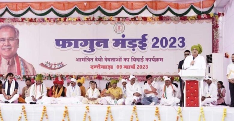 फागुन मड़ई में आए देवी-देवताओं के बिदाई समारोह में पहली बार शामिल हुए प्रदेश के मुख्यमंत्री ने यहां ओड़ीसा, तेलंगाना सहित बस्तर के 851 देवी, देवताओं की बिदाई को अदभुत बताया। उन्होंने कहा कि बस्तर की संस्कृति के कई रंग हैं, बस्तर के दशहरा के समान दंतेवाड़ा की फागुन मड़ई भी पूरी दुनिया में प्रसिद्ध है। मां दंतेश्वरी के आंगन में होली खेलने के लिए क्षेत्र के सैकड़ों देवी-देवता यहां आते हैं। हमारे यहां की आदिवासी परंपराओं के पीछे जो भाव, दर्शन और कथाएं हैं, उसे जाने-समझे बिना छत्तीसगढ़ की संस्कृति को नहीं पहचाना जा सकता। सरकार ने अपनी गौरवशाली और अनूठी परंपराओं और तीज-त्यौहारों को सहेजने का काम किया है। गांव-गांव में स्थित देवगुड़ियों के संरक्षण का काम भी इसी उद्देश्य से शुरू किया है। आदिवासी परंपराओं को आगे बढ़ाने वाले पुजारी, बैगा, गुनिया, मांझी, हाट पहरिया, बजा मोहरिया को राजीव गांधी ग्रामीण भूमिहीन कृषि मजदूर न्याय योजना में शामिल करते हुए उनके लिए 7 हजार रुपए की वार्षिक सहायता की व्यवस्था की गई है।