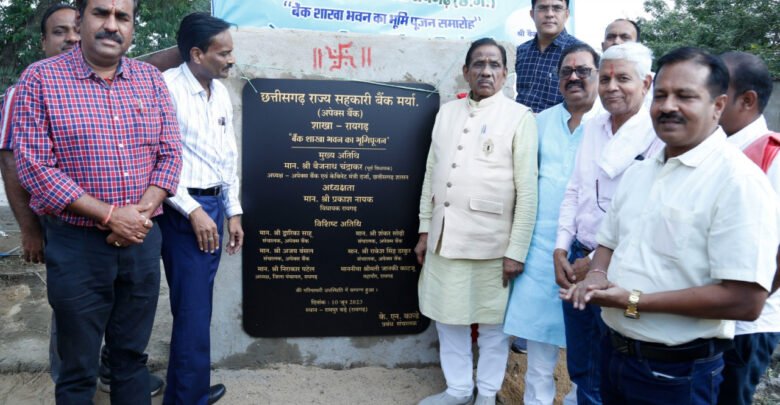 रायगढ़, 11 जून 2023 l छ.ग.राज्य सहकारी बैंक के अध्यक्ष बैजनाथ चंद्राकर के मुख्य आतिथ्य में आज अपेक्स बैंक की शाखा रायगढ़ के नवीन भवन निर्माण हेतु भूमिपूजन हुआ। इस दौरान जिला पंचायत अध्यक्ष निराकार पटेल भी उपस्थित रहे।