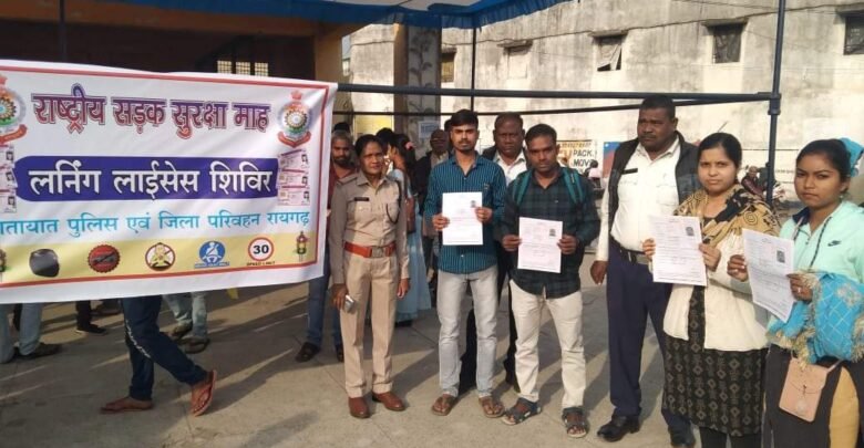 यातायात पुलिस और परिवहन विभाग रायगढ़ के संयुक्त तत्वाधान में लर्निंग लाइसेंस शिविर का हुआ सफल आयोजन…..