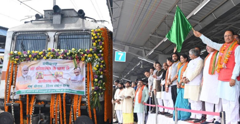 मुख्यमंत्री श्री विष्णु देव साय ने आज राजधानी के रेल्वे स्टेशन से अयोध्या स्पेशल गाड़ी को हरी झंडी दिखा कर रवाना किया