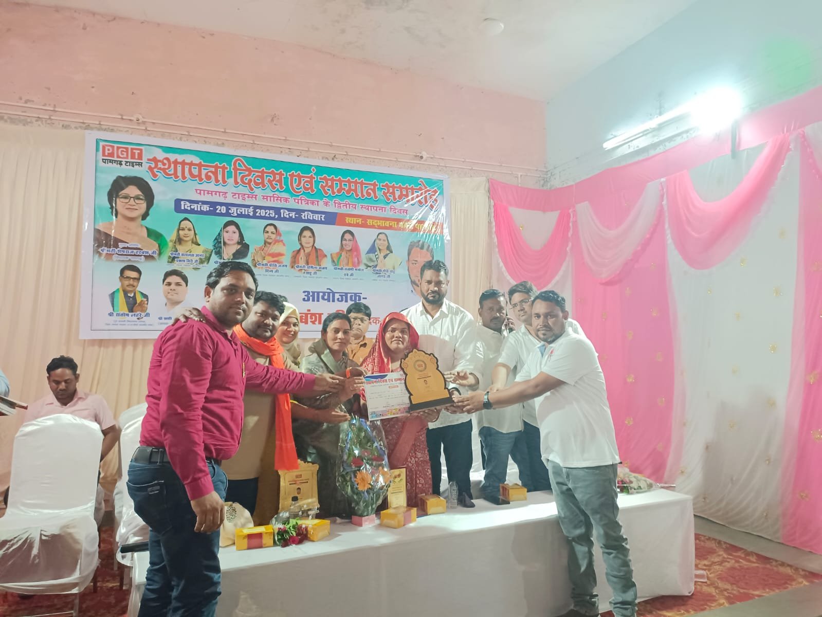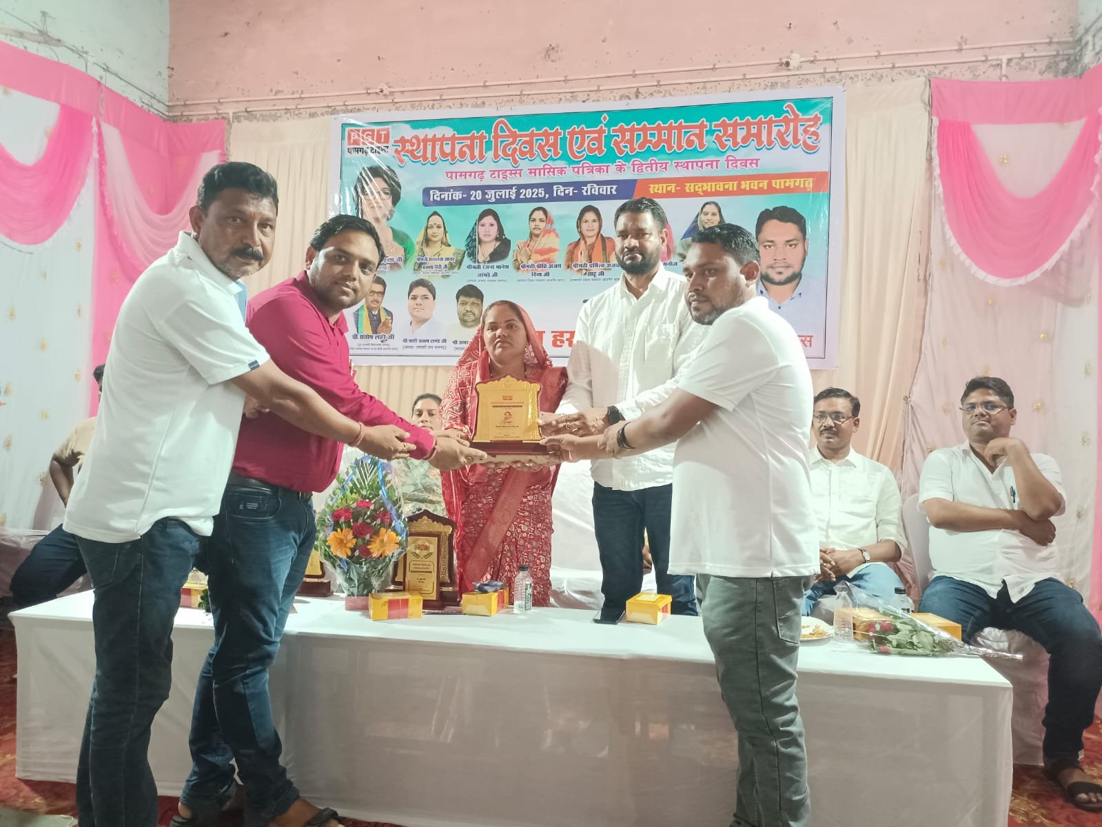 पामगढ 20 जुलाई 2025। नगर पंचायत पामगढ़ के सद्भभावना भवन में पामगढ़ टाइम्स मासिक पत्रिका का द्वितीय स्थापना दिवस पर भव्य सम्मान समारोह का आयोजन किया गया. सर्वप्रथम कार्यक्रम का शुभारंभ बाबा साहब भीमराव अंबेडकर के तेल चित्र पर माल्यार्पण कर एवं दीप प्रज्वलित कर कार्यक्रम का शुभारंभ मंचस मुख्य अतिथियों के द्वारा किया गया. तत्पश्चात कार्यक्रम में उपस्थित मुख्य अतिथि पामगढ़ नगर पंचायत अध्यक्ष गौरी जांगड़े इस कार्यक्रम में अध्यक्षता प्रीति अजय दिव्य विशिष्ट अतिथिगण अजय साहू व्यापारी संघ अध्यक्ष शशि प्रताप टांडे अमर टंडन संतोषी मनोज रात्रे वरिष्ठ पत्रकार संपादक उपेंद्र तिवारी सरोज सारथी भूपेंद्र सिंह ठाकुर शाखा प्रबंधक पुष्कर दिनकर सरपंच संघ अध्यक्ष विशेष अतिथिगढ़ डॉक्टर नोसिन रिज़ा सहित सभी अतिथियों का भव्य स्वागत पत्रिका के संपादक उदय हरबंश एवं उनके टीम के द्वारा किया गया।