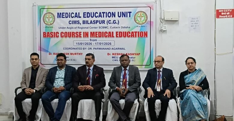 बिलासपुर, 16 जनवरी 2026 छत्तीसगढ़ आयुर्विज्ञान संस्थान (सिम्स), बिलासपुर में अधिष्ठाता (डीन) डॉ. रमणेश मूर्ति के कुशल नेतृत्व एवं मार्गदर्शन में आयोजित तीन दिवसीय राष्ट्रीय स्तरीय कार्यशाला के माध्यम से चिकित्सा शिक्षा के क्षेत्र में नवाचारों को साझा किया जा रहा है। राष्ट्रीय आयुर्विज्ञान आयोग (NMC) की ओर से आए समन्वयक डॉ. परमानंद अग्रवाल की देखरेख में आयोजित इस कार्यक्रम में तीन मेडिकल कॉलेजों के फैकल्टी सदस्य हिस्सा ले रहे हैं।