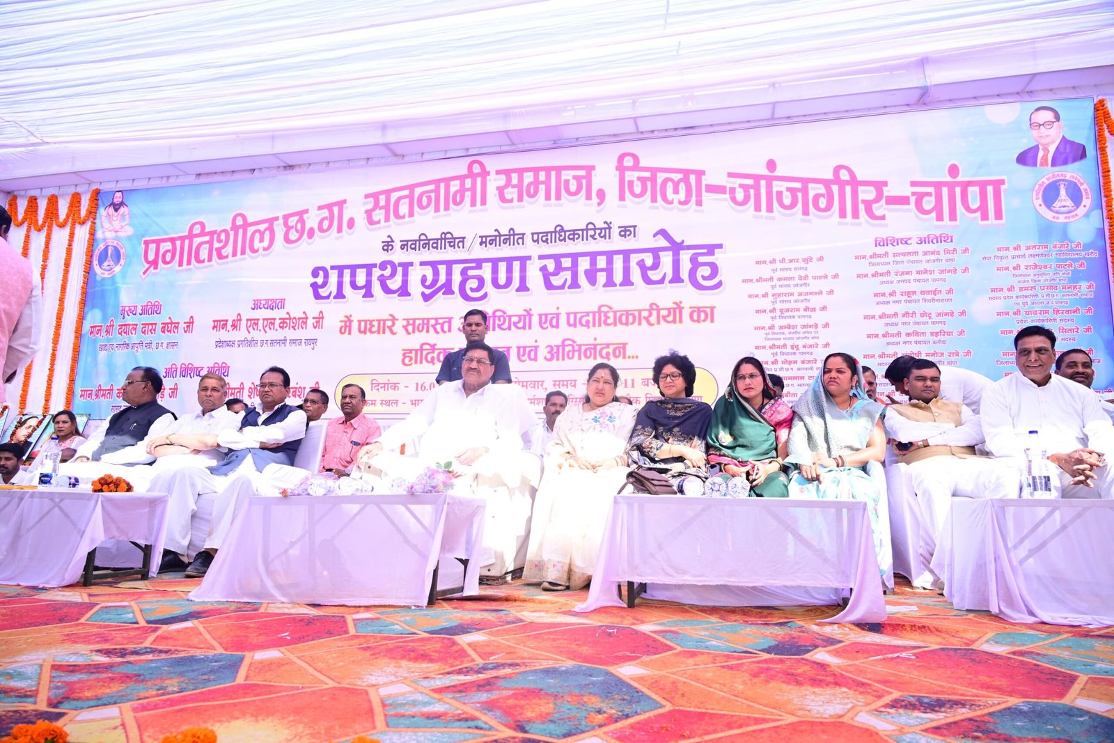 प्रगतिशील छत्तीसगढ़ सतनामी समाज जांजगीर चांपा के नवनिर्वाचित पदाधिकारियों के शपथग्रहण समारोह में हुए शामिल मंत्री दयालदास बघेल