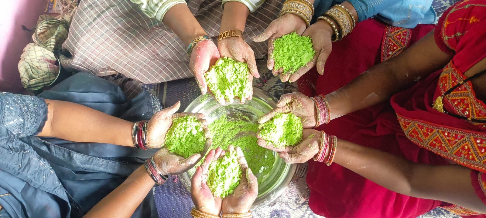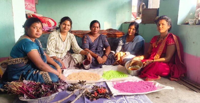 हर्बल गुलाल से आत्मनिर्भरता की ओर समूह की महिलाएं पलास, चुकंदर एवं पालक के पत्तों से बना रही हर्बल गुलाल एनआरएलएम के माध्यम से आत्मनिर्भरता की ओर बढ़ रही महिलाएं