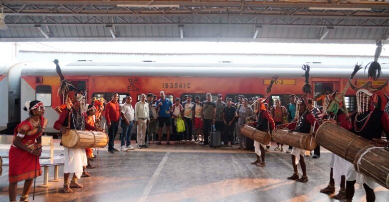 17 सदस्यीय यह दल किरंदुल पैसेंजर ट्रेन के माध्यम से पहुंचा। खिलाड़ियों के स्वागत में स्थानीय कलाकारों ने पारंपरिक लोकनृत्य प्रस्तुत कर बस्तर की समृद्ध सांस्कृतिक विरासत की जीवंत झलक दिखाई। विशेष रूप से गौर नृत्य समूह के कलाकारों ने ढोल की थाप पर पारंपरिक वेशभूषा में मनमोहक प्रस्तुति दी, जिससे खिलाड़ियों का उत्साह दोगुना हो गया।