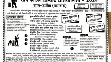 शुभम् दिनकर//जांजगीर 18 मई 2024। एन्ट्री फीस 2200/-रूपये मैच प्रारम्भ तिथि 12.05.2024 आप सभी क्रिकेट प्रेमियों को सूचित किया…