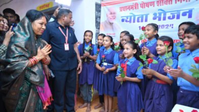 मुख्यमंत्री की धर्मपत्नी ने अपने जन्मदिन पर आयोजित न्योता भोज में अपने हाथों से बनी खीर बच्चों को परोसी