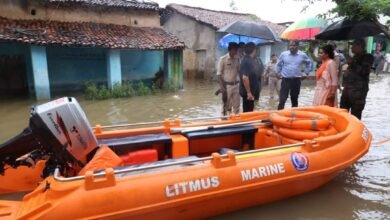 Global36garh news : नाव से बाढ़ प्रभावित इलाकों में पहुंचे कलेक्टर और एसपी, विधायक रायगढ़ भी रहे साथ